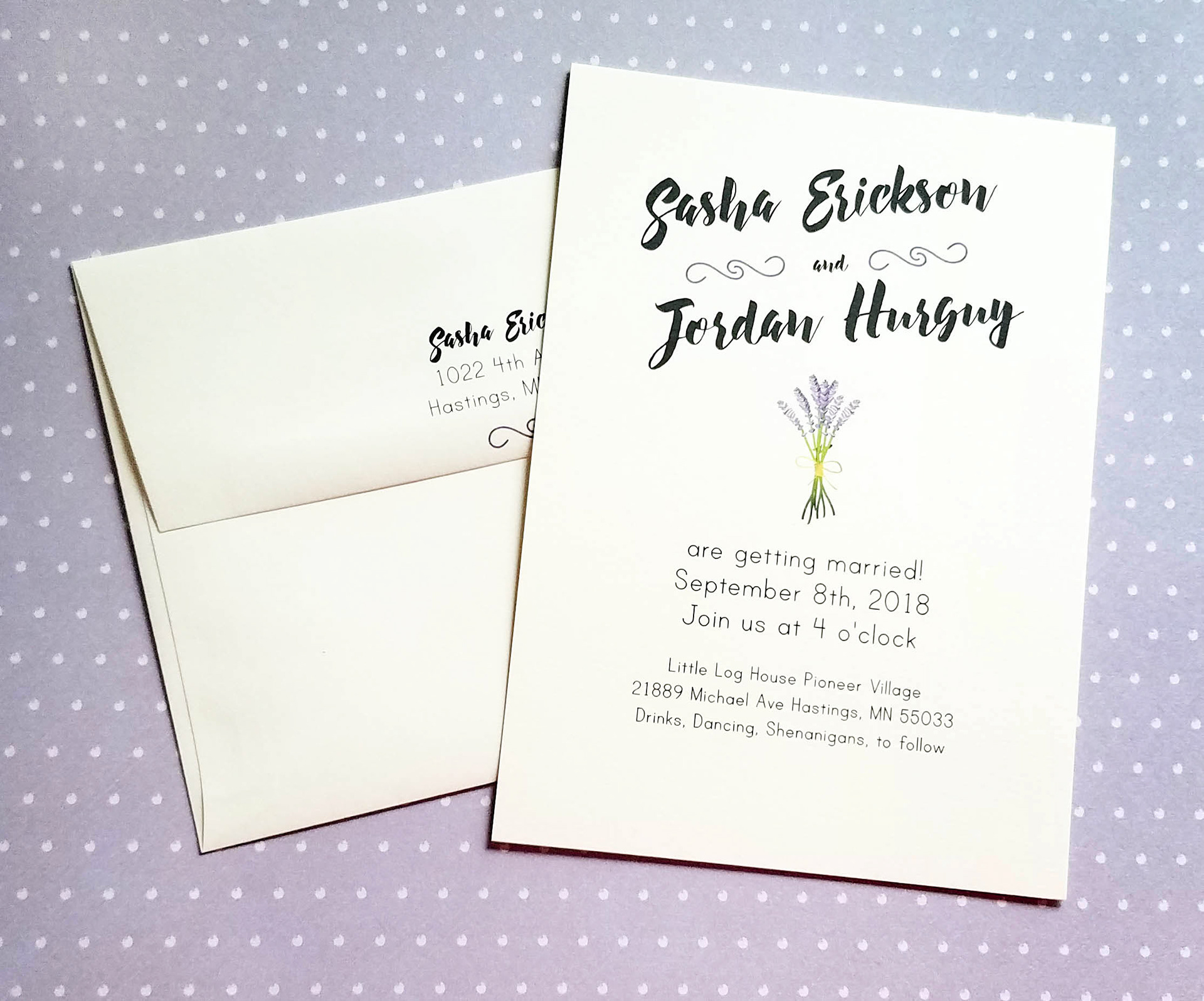 They ended up picking the first invite, so I created a whole suite for them. The suite includes: Save the Date, Invite with RSVP, Addressed Envelope with Liner, Program, Menu, and Snapchat Filter